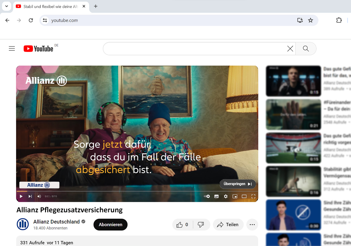 Dank der flexiblen Steuerung über geografische und demografische Parameter wird Ihre Anzeige genau der richtigen Zielgruppe ausgespielt. Ihre Anzeigen können als Pre-Roll- oder Mid-Roll-Videos eingeblendet werden – entweder zu Beginn oder während des laufenden Videos. Je nach Kampagne kann die Anzeige auch unter “YouTube Shorts” ausgespielt werden. Nutzer haben zudem die Möglichkeit, die Werbung nach 5 Sekunden zu überspringen oder durch den Klick auf “Mehr Infos“ die Anzeige weiter zu verfolgen.